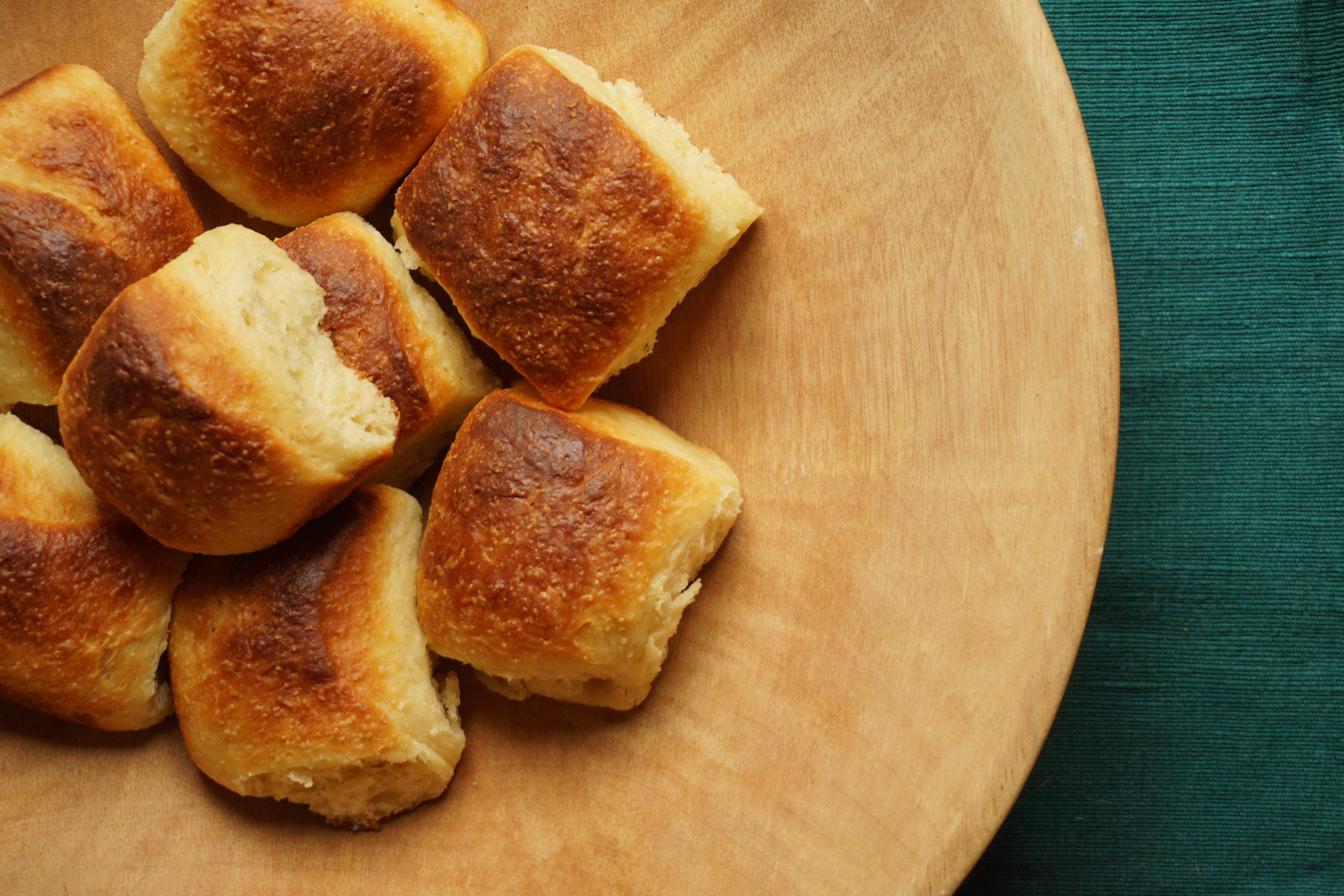 The first time I made it I used my Kitchen Aid with the dough hook. Being a novice at bread making I don’t have a feel for how long to knead bread or what the dough should look like.  My first batch, though tasty, texturally was a little dense and more like a biscuit.  Puzzling, since words like airy, fluffy, and soft were most used to describe these Hokkaido treats.  Back to the drawing board.  The next batch, I admit I CHEATED.  I used the dough cycle of my bread machine which took care of the mix, knead, and first rest cycle.  All I had to do was shape the dough and let it rise one more time before popping them into the oven.