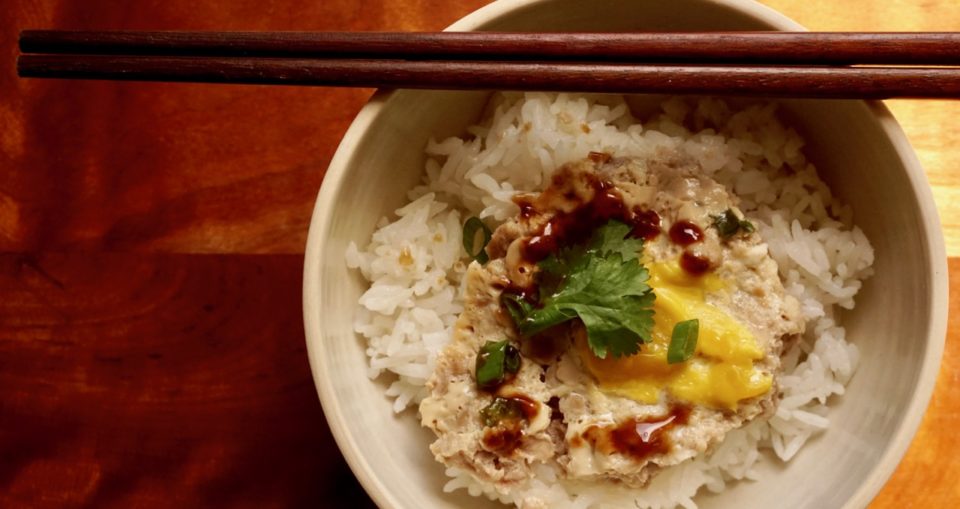 Classic Cantonese Homestyle dish, steamed minced pork and salted eggs, bowl of steaming white rice is essential!