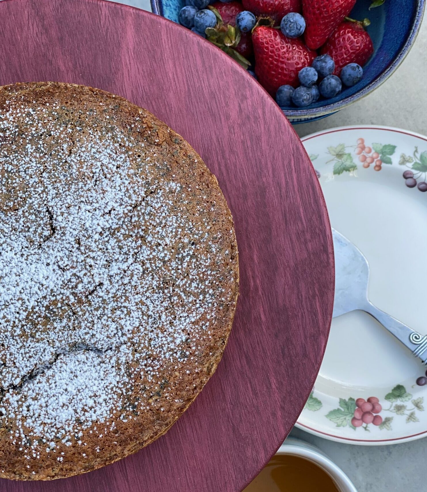 • Cool completely before dusting with the powdered sugar and slicing into wedges to serve. The cake will keep in an airtight container at room temperature for up to 5 days.
