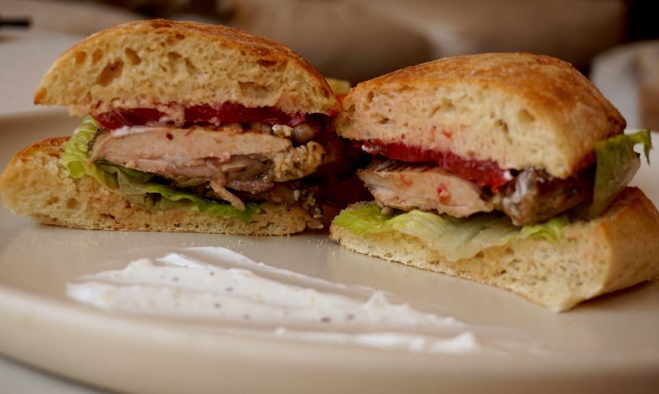 NYT cooking recently posted a recipe for Middle Eastern Herb and Garlic Chicken. Woohoo, and wouldn’t you know it, the recipe uses many of the same seasonings as the turkey burgers. It’s totally delicious. We were in the mood for sandwiches so I marinaded boneless chicken thighs while Wes fired up the grill. I found some nice crusty rolls and threw together a tomato, cucumber and onion salad to go along with our sandwiches. I couldn’t wait for the chicken to come off the grill.