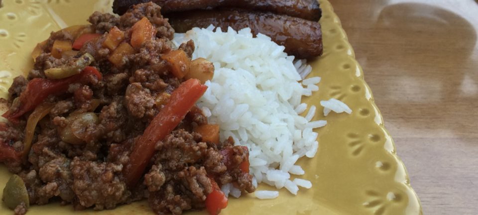 Dinners are potluck and lucky for me Stephanie brought one of her favorite dishes, Picadillo. Its roots are Latin, regional versions can be found from Mexico to Cuba. It’s a delicious mixture of ground beef, sautéed with tomatoes, seasoned with bay leaves and raised to flavor-town by, drum roll please, olives and raisins. The briny tartness from the olives and that little pop of sweetness from the raisins makes this dish a stand out.